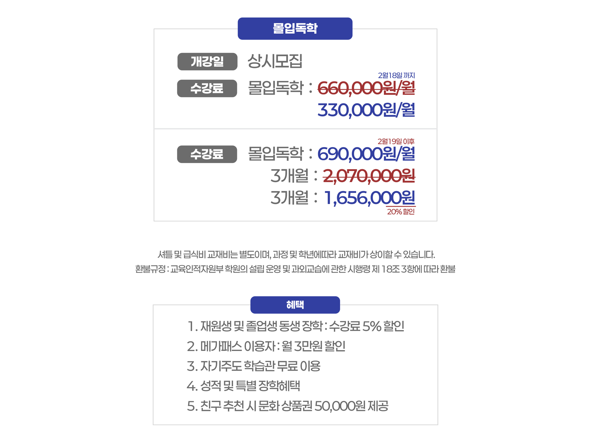 | 수강료 10% | 교육공무원 (초·중·고 교사 / 교육청) 경찰 · 소방 · 군인 자녀 |