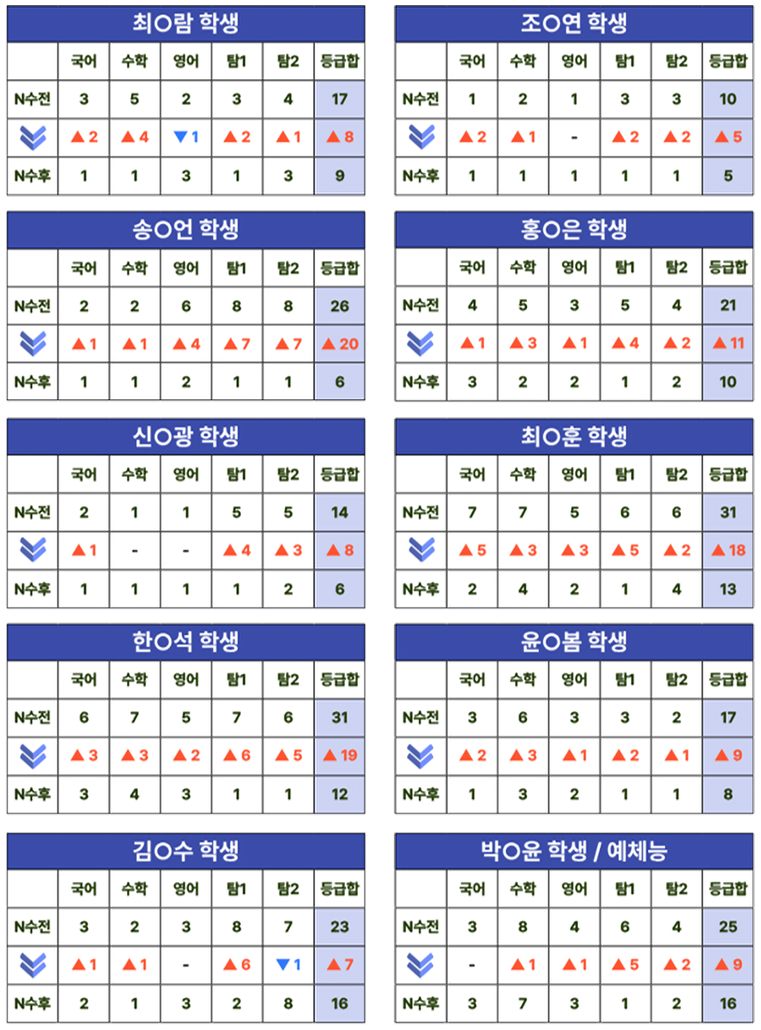 5) 2025 수능, 2026 수능 성적 확인 가능한 재원생 성적향상자 국수탐(2) 백분위점수 기준(선행반, 백분위기준, 독학, 예체능 제외)