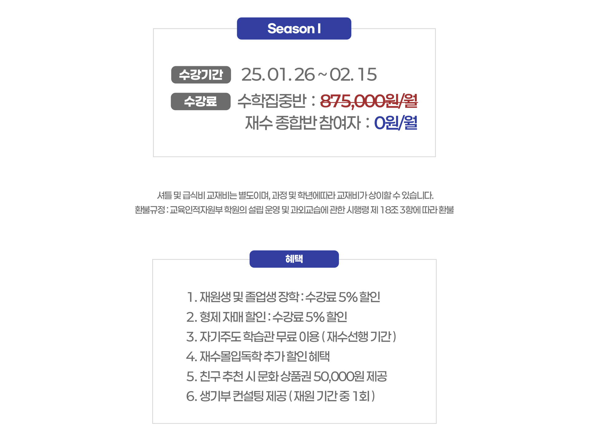 수원 스카이에듀 수학집중반 교습비 안내