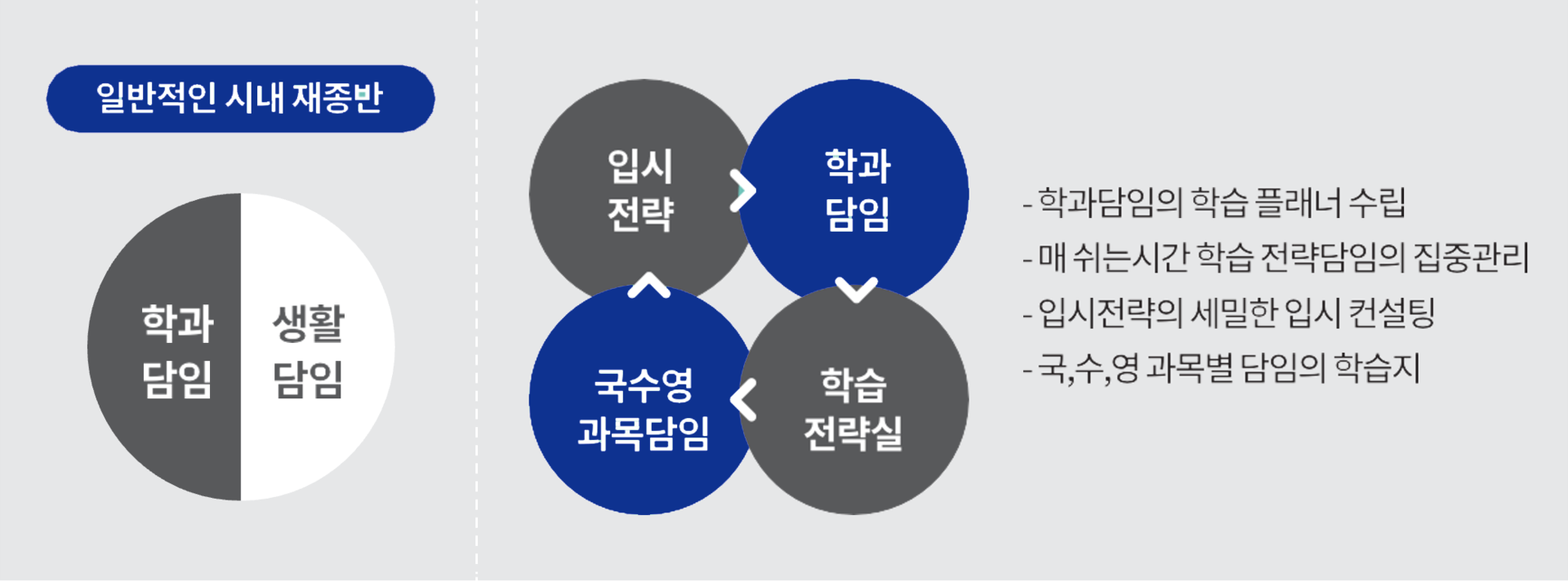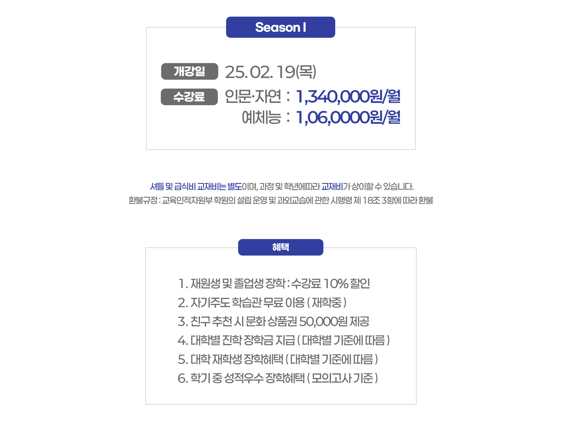 | 수업 과목 | 국, 수, 영, 사탐, 과탐, 논술(인문.수리) |
